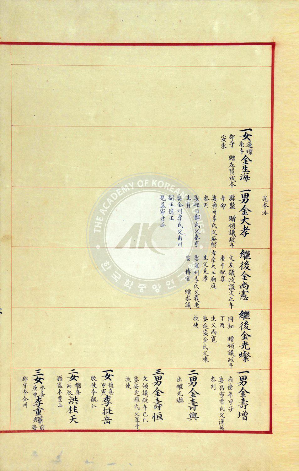 선택 인물 가계도 재정렬